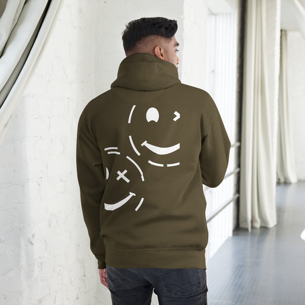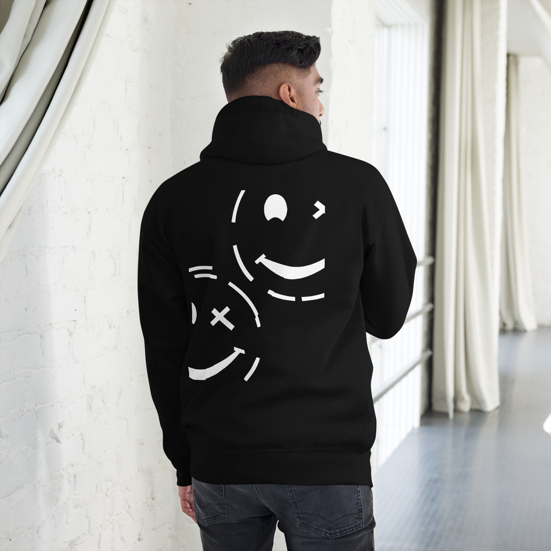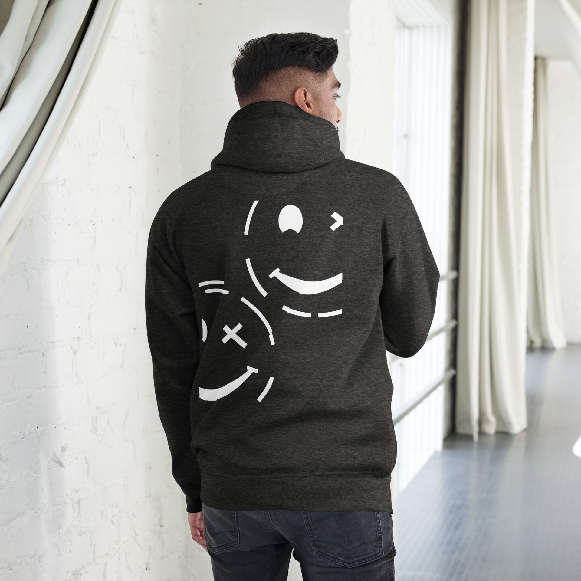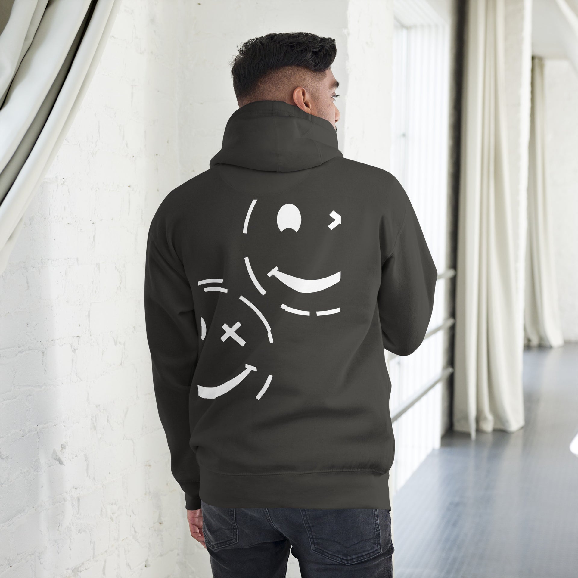 Der Unisex Hoodie „Playful Chaos“ setzt vollständig auf Zurückhaltung auf der Vorderseite und lässt den Smiley-Backprint für sich sprechen. Das Design wirkt verspielt und gleichzeitig klar – wie kontrolliertes Chaos, das sofort ins Auge fällt, ohne laut zu sein.