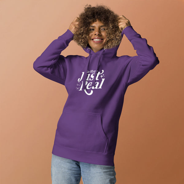Der Unisex Kapuzenpullover „Just Real“ bringt die Message auf den Punkt. Das Design steht für Authentizität und einen bewussten Gegenpol zu leeren Trends. Kein großes Drumherum – einfach ein klares Statement, das im Alltag funktioniert.
